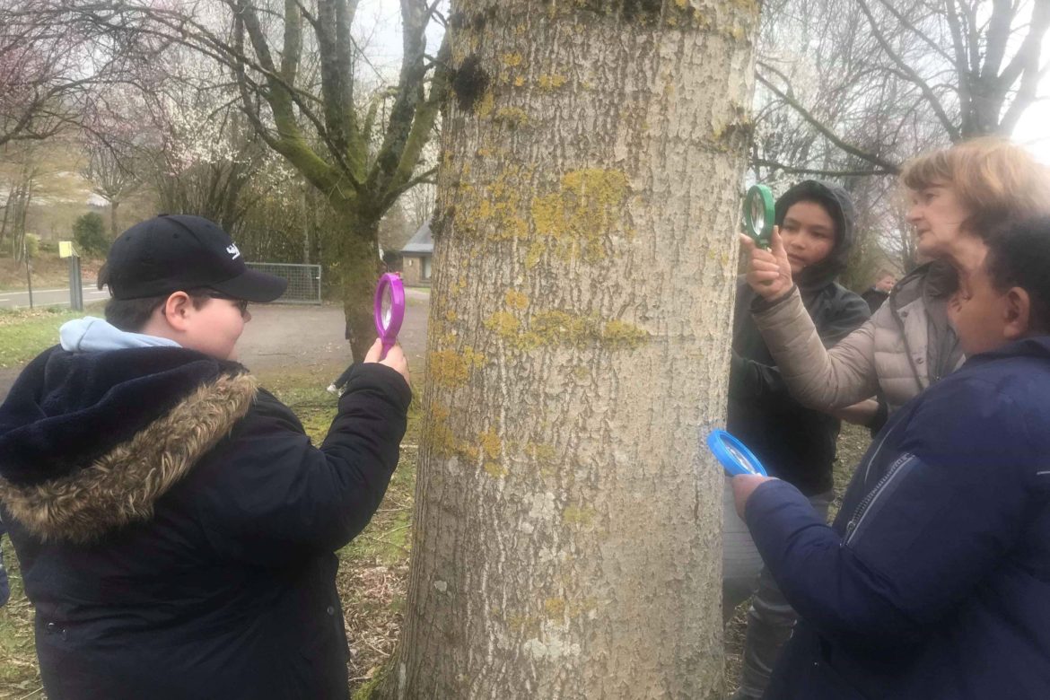 La nature par les sens pour le groupe 1 et découverte de l’environnement (balade le long des ruisseaux) pour le groupe 2